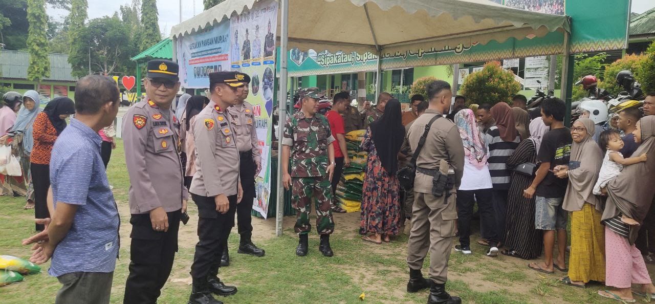 WAJO – Waka Polres Wajo Kompol Hardjoko bersama Kapolsek Tempe AKP Andi Muhammad Takdir dan Pawas Polres Wajo IPDA Alpius menghadiri Gerakan Pangan Murah yang dilaksanakan di Makodim 1406 Wajo, Kec. Tempe, Kab. Wajo.