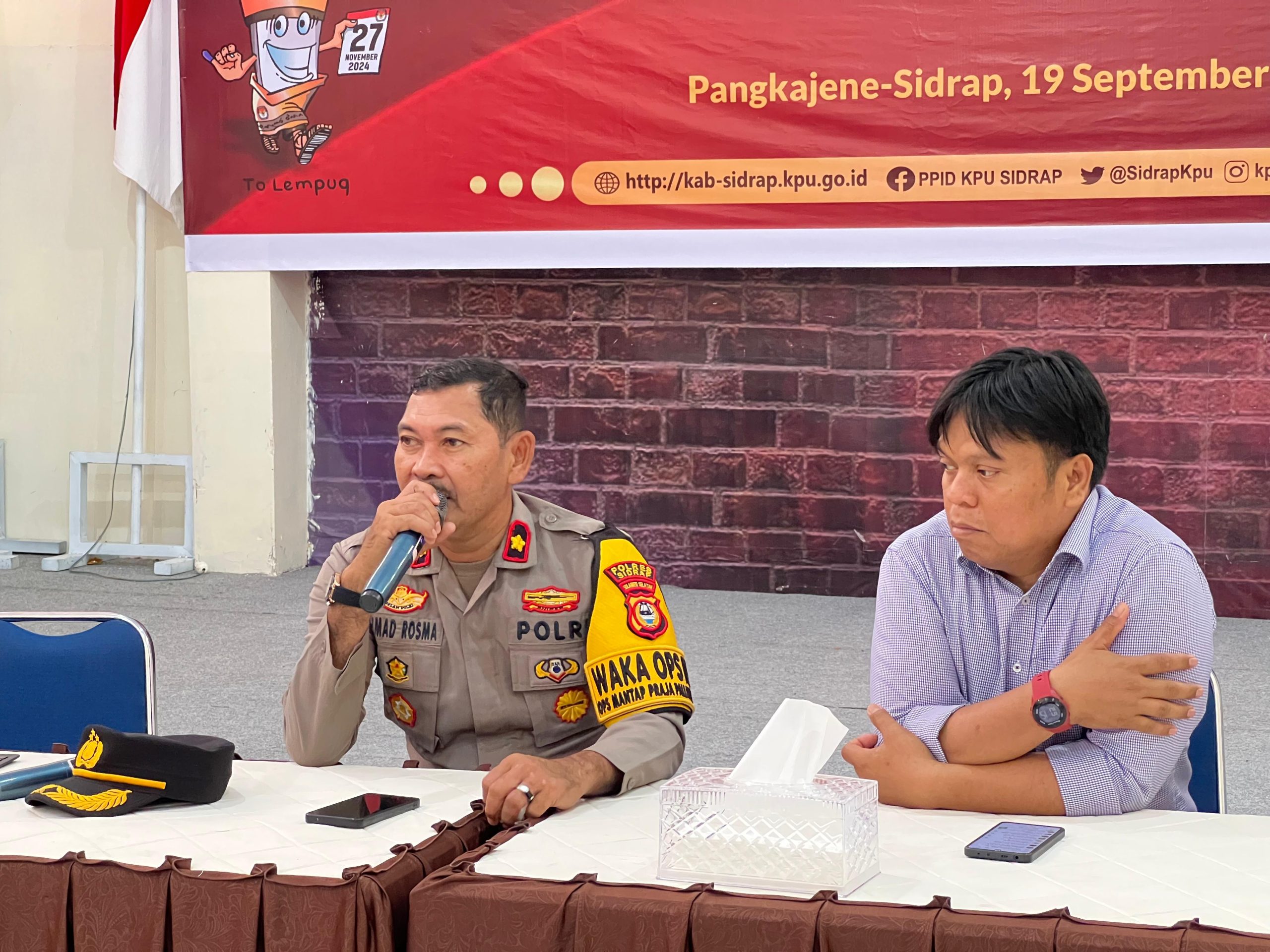 SIDRAP – Wakil Kepala Kepolisian Resor (Wakapolres) Sidrap, KOMPOL Ahmad Rosma. SH, didampingi oleh Kepala Satuan Intelkam (Kasat Intelkam) AKP Lukman Husain menghadiri Rapat Koordinasi (Rakor) terkait persiapan pelaksanaan kampanye dan laporan dana kampanye di kantor Komisi Pemilihan Umum (KPU) Sidrap, Kamis (19/09/24).